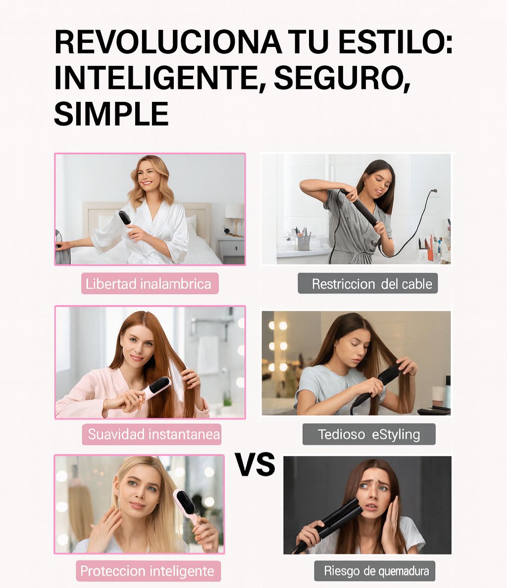 El Cepillo alisador de pelo inalámbrico llegó para revolucionar tu rutina: alisa tu cabello en 1 minuto, sin cables y sin dañar tu melena.